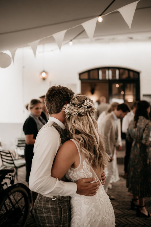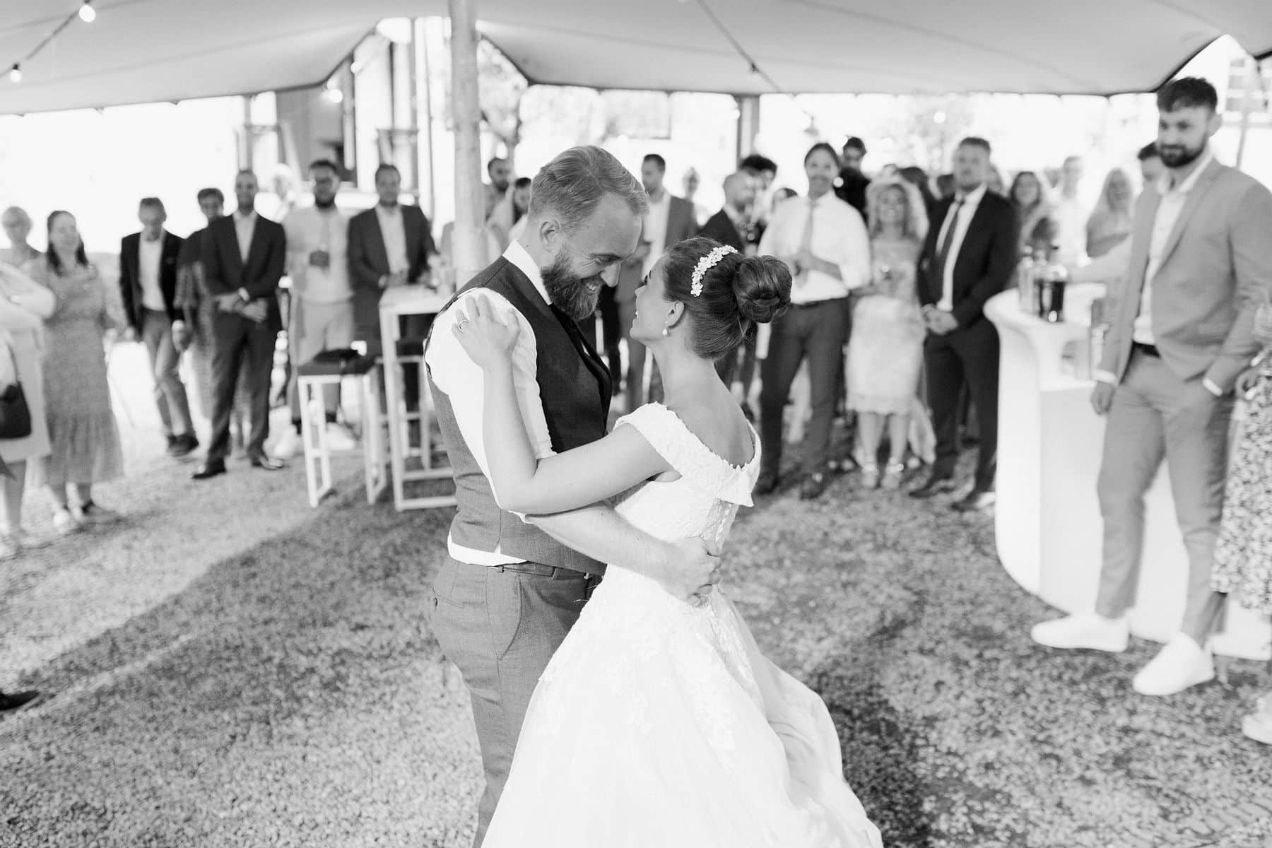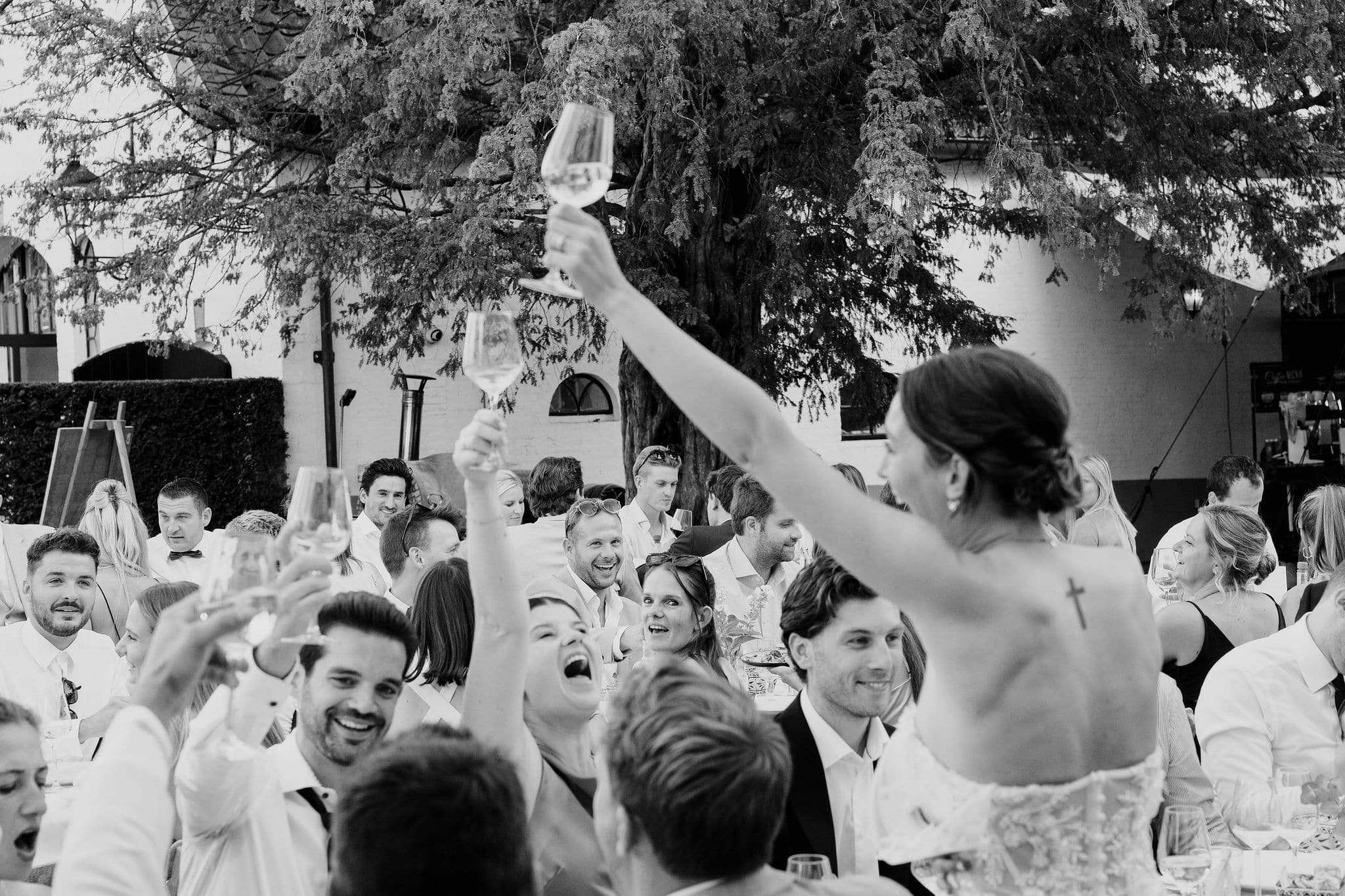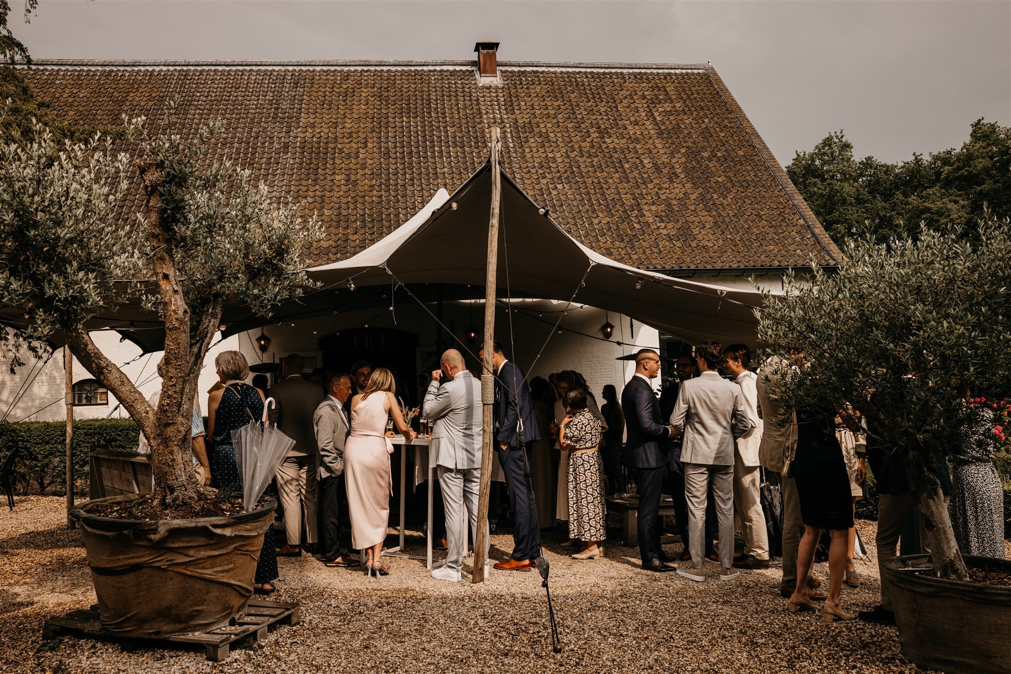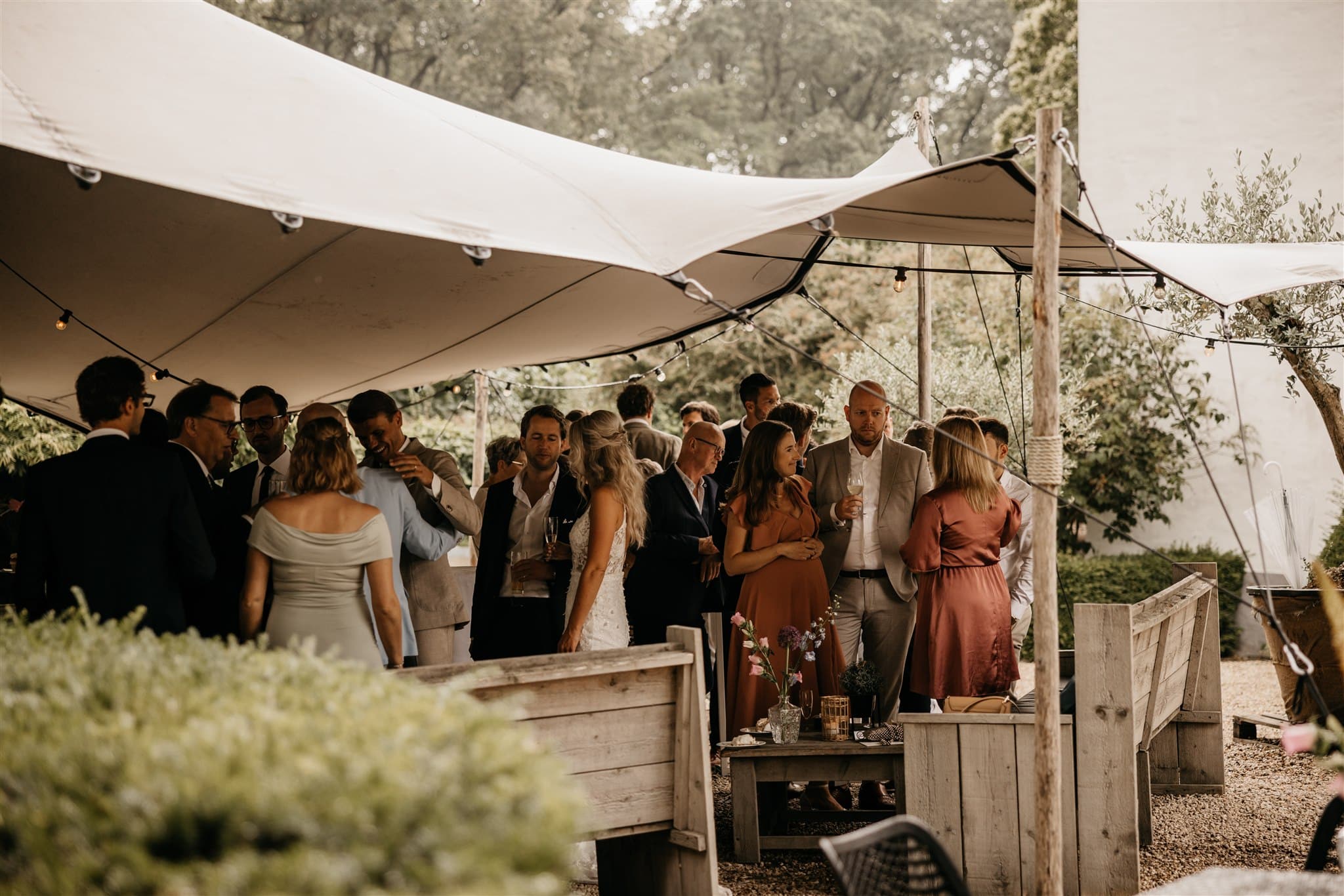 Een heerlijke plek om aan te komen met de bruidsauto via de brug, een mooie entree te maken via de houten trap en te genieten van een borrel of diner tijdens jullie bruiloft. De stretchtent, die vastzit aan ’t Spijcker, staat er van april tot en met december en is dus ook in de herfst/winter een prachtige plek.