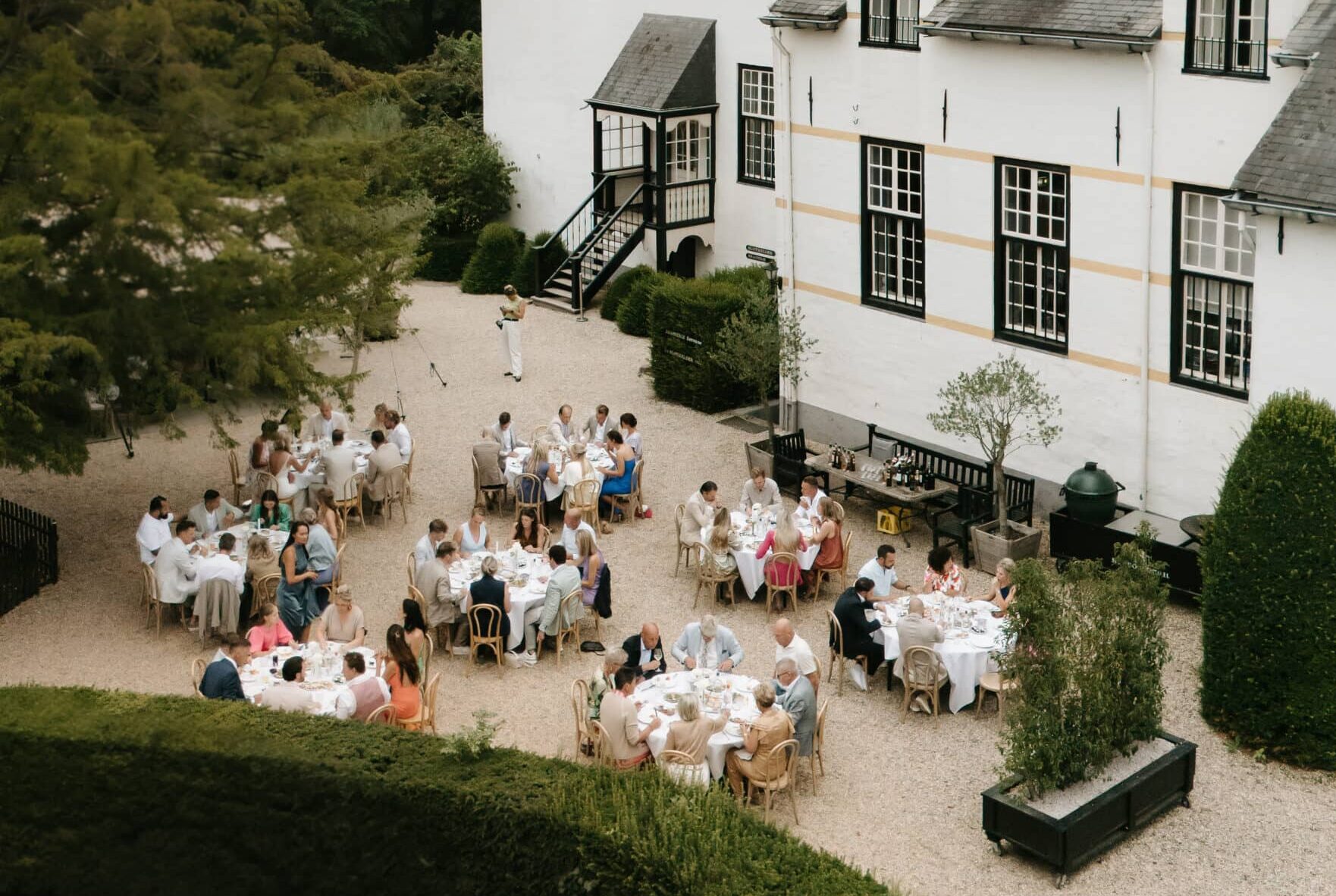 Het lijkt net alsof we in Toscane zijn! Dat is – volgens bruidsparen en fotografen – de meest gehoorde uitspraak over de prachtige binnenplaats van Slot Doddendael. En dat is niet zo gek: de witte muren van het slot, de olijfbomen op het grind, de ondergaande zon en met wit linnen gedekte tafels tijdens het diner zorgen samen voor een bijna Italiaans decor. Een grote ruimte met een totale oppervlakte van 375 m2.
