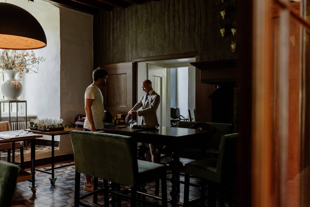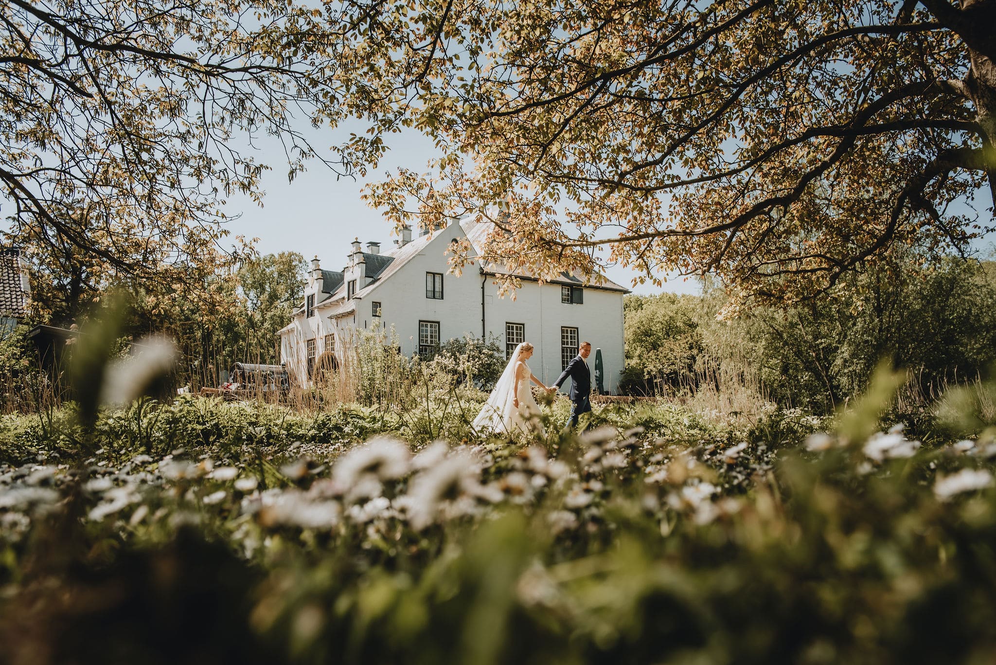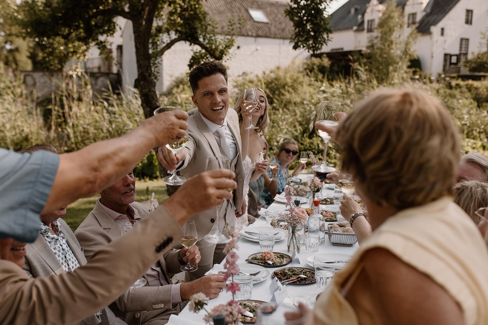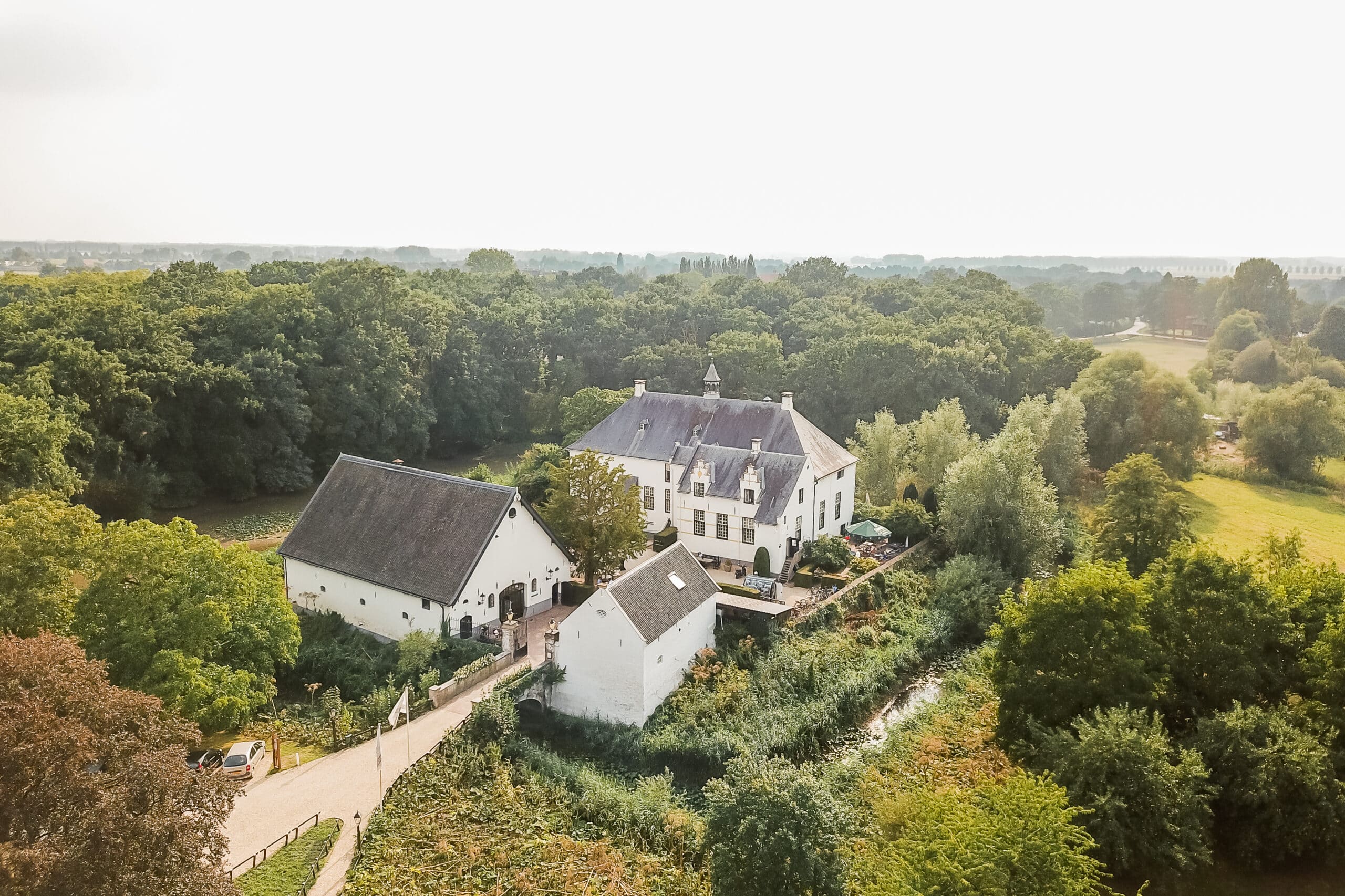 Een prachtige ruime boomgaard vol met appelbomen, met uitzicht op het Slot en de ondergaande zon. Een prachtig decor midden in de natuur voor de ceremonie, fotoshoot of diner met wit linnen gedekte tafels tijdens een bruiloft. De boomgaard is via een bruggetje gekoppeld met de Wijngaard. Creëer je eigen setting van festival tot romantische mediterrane sferen.